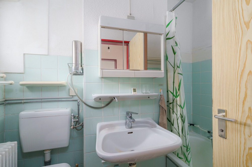 Die Wohnung befindet sich insgesamt in einem renovierungsbedürftigen Zustand, bietet jedoch viel Potenzial zur Umsetzung eigener Wohnideen.