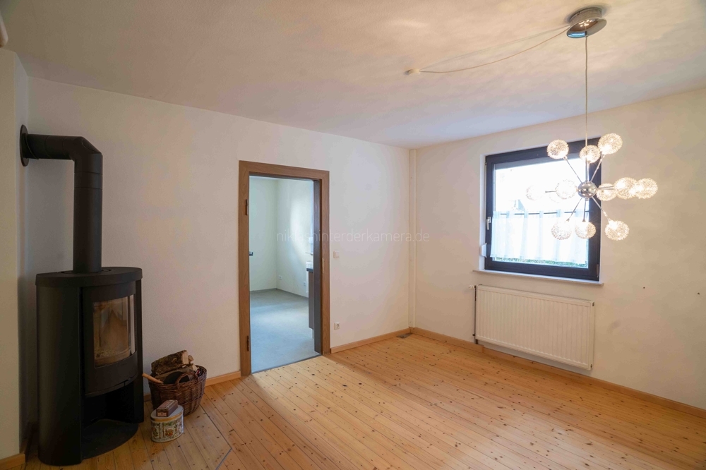 Das Haus bietet im Erdgeschoss ein großzügiges Wohnzimmer, eine helle Wohnküche sowie ein Esszimmer, das alternativ auch als Schlaf- oder Arbeitszimmer genutzt werden kann.