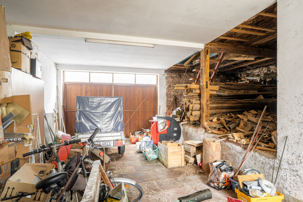 Der trockene Dachboden ist nicht ausgebaut und ist bis zum Spitzdach offen. Ein alter Gewölbekeller liegt mit Zugang in der Waschküche unter der Scheune.
