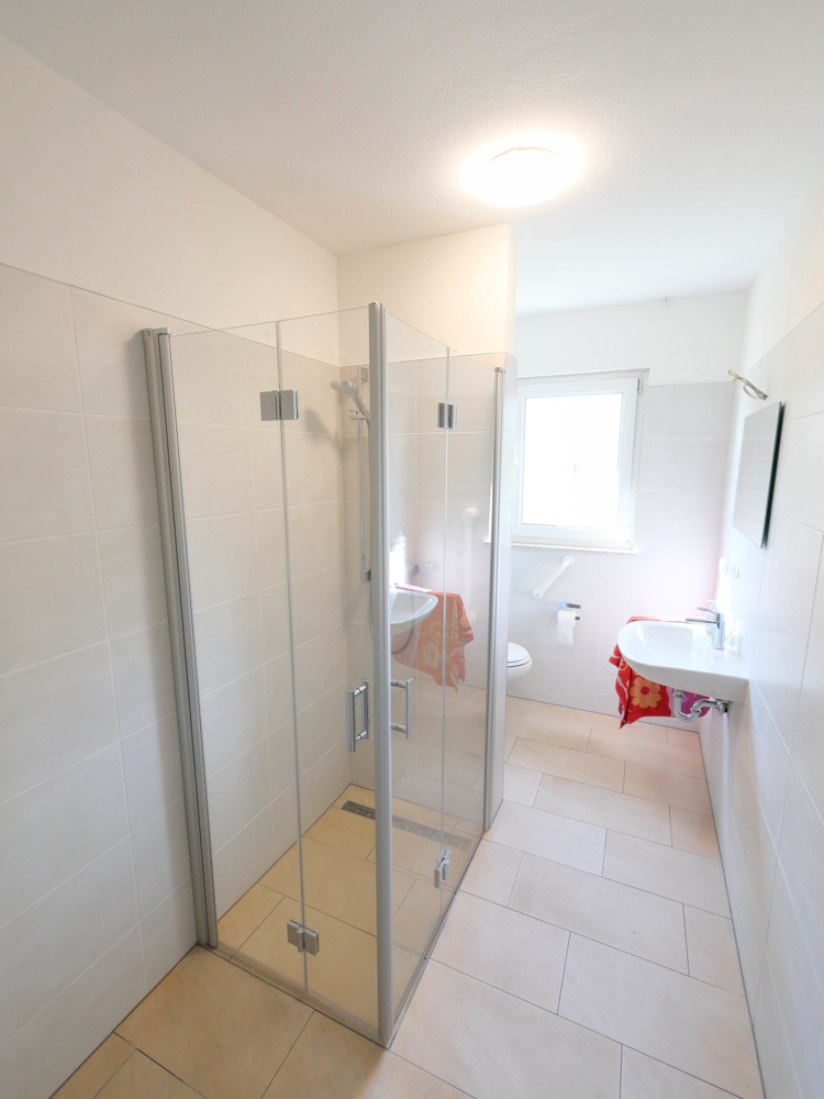 Aktuell sind es zwei Wohnungen: Das Erdgeschoss unterteilt sich in eine 3-Zimmer-Wohnung mit ca. 81 m² Wohnfläche, einem modernisierten Tageslichtbad und einer großen Terrasse.