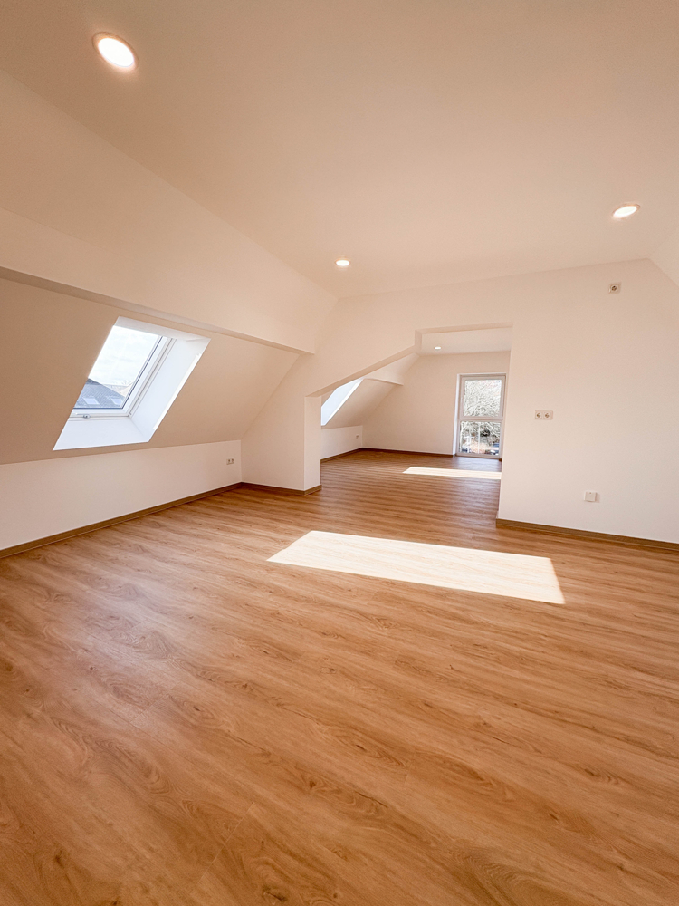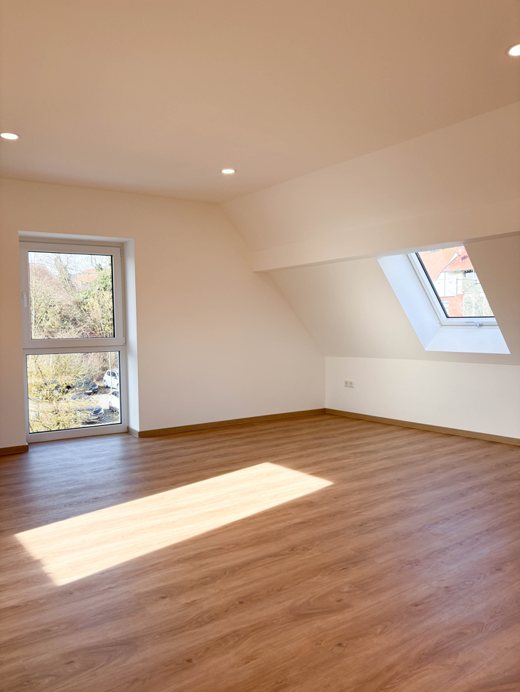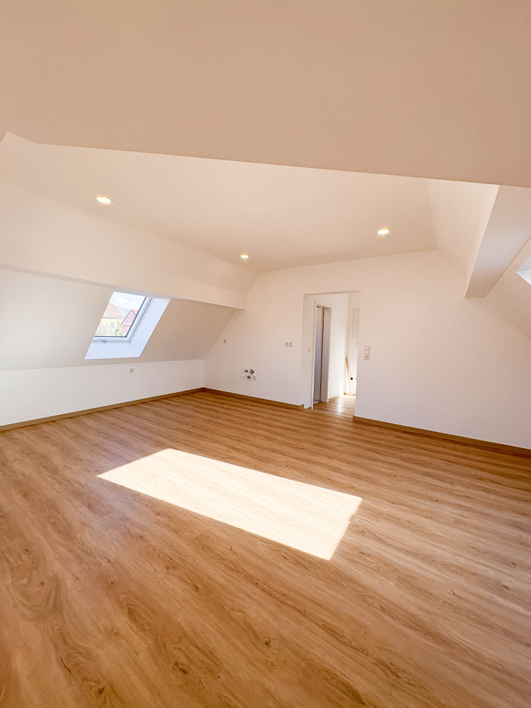 Das Gebäude wurde im Jahr 1965 erbaut und im Jahr 2025 umfassend kernsaniert, sodass historischer Bestand und moderner Wohnkomfort harmonisch miteinander verbunden wurden. Sie sind auf der Suche nach einer modernen 2-Zimmer-Wohnung? Dann könnte dieses attraktive Zuhause in Estenfeld genau das Richtige für Sie sein. Die Dachgeschosswohnung besticht durch ihre helle, freundliche Atmosphäre und eine einladende Wohnqualität. Die charakteristischen Schrägen verleihen den Räumen besonderen Charme und sorgen für ein behagliches Ambiente. Dank der offenen Raumgestaltung entsteht ein modernes, großzügiges Wohngefühl mit viel Spielraum für Ihre individuellen Einrichtungsideen.