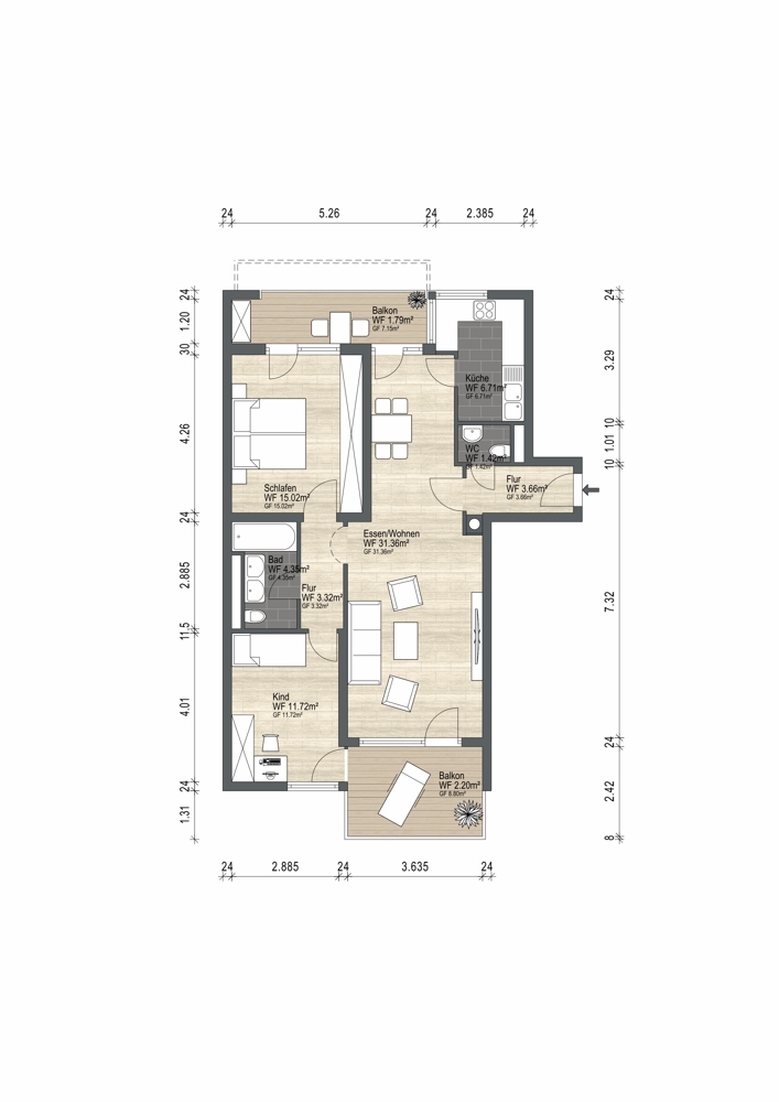 - Balkon: Süd & Nord