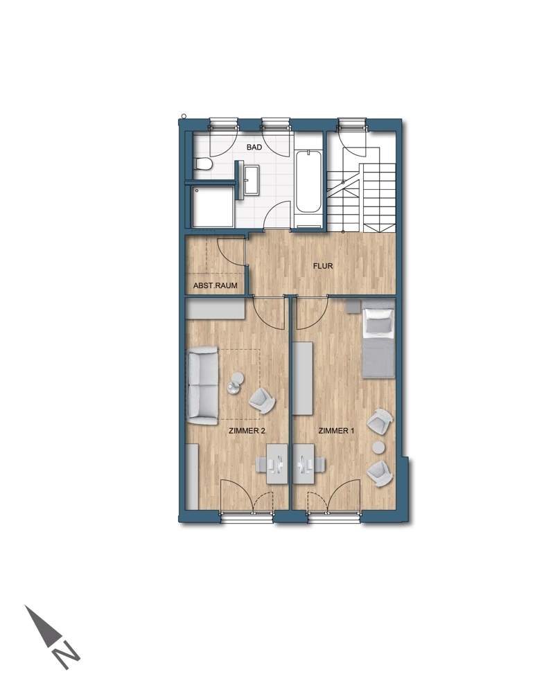 • Im 1. OG großzügige Schlafräume und Masterbad