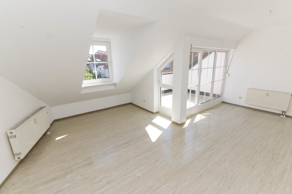 Der Wohn- /Essbereich überzeugt durch seine Größe – von hier gelangen Sie auf Ihre ruhige Dachloggia mit