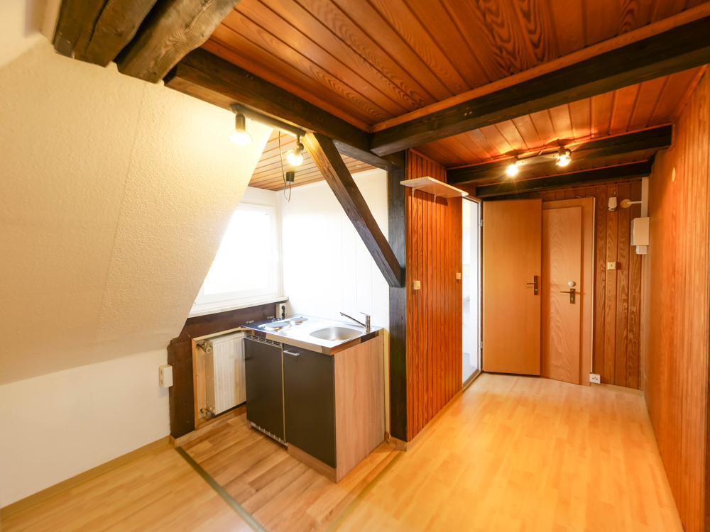 Die Wohnung verfügt über ca. 24 m² Wohnfläche und ist teilmöbliert. Zur Einrichtung gehören zwei Kommoden, eine kleine Bank sowie ein Regal, sodass Sie direkt einziehen und sich wohlfühlen können.