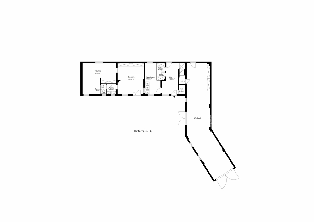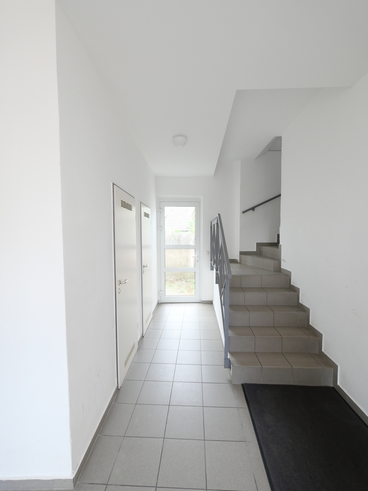 In das OG dieser ehemaligen Näherei wurden 1998 drei Wohnungen neu eingebaut. Die Grundrisse sind modern und gut durchdacht. Im EG befindet sich ein Waschraum. Die Wohnungen sind gut vermietet. Im EG dieses Gebäudes befinden sich zwei Gewerbeeinheiten. Eine Einheit wurde zuletzt als Büro genutzt, diese befindet sich in einem sehr einfachen Zustand. Die größere Gewerbeeinheit ist nicht ausgebaut und hat Garagencharakter. Eventuell können diese Flächen zu Wohnungen umgebaut werden.