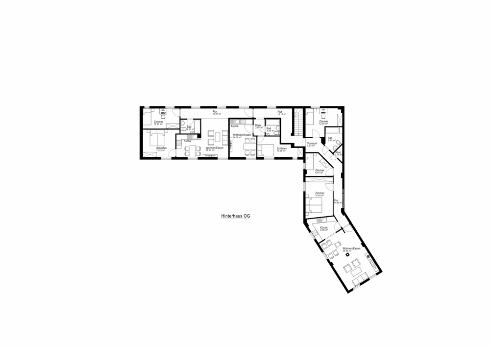 Falls baurechtlich zulässig können die Gewerbeflächen zu Wohnraum umgebaut werden. Den EG Einheiten könnten Gartenflächen zugeordnet werden. Balkone am Haus 2 würden den Wohnwert zusätzlich steigern.