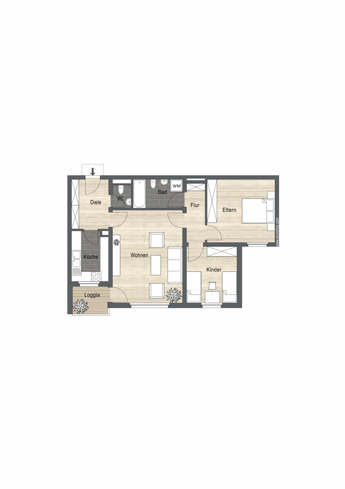 Beim Betreten der Wohnung empfängt Sie ein großzügiger Eingangsbereich, der ausreichend Platz für Garderobe und Stauraum bietet. Von hier aus gelangen Sie in alle weiteren Räume. Die Wohnung überzeugt mit einem klar strukturierten Grundriss und hellen Räumen, die eine angenehme Wohnatmosphäre schaffen.