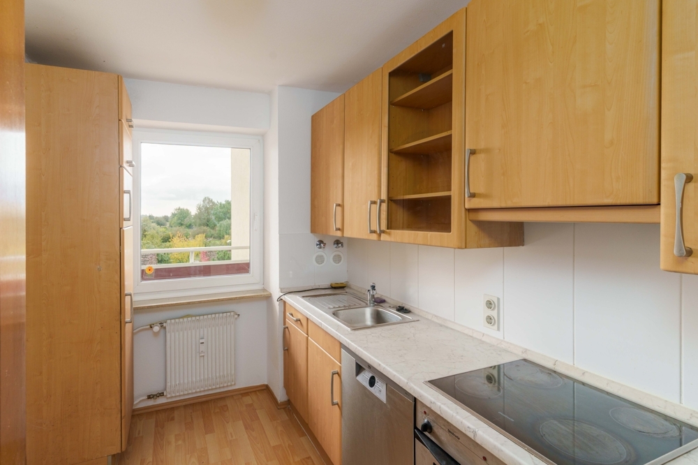 Das Wohnzimmer verfügt über einen direkten Zugang zum sonnigen Balkon, von dem aus Sie eine herrliche Fernsicht genießen. Die Einbauküche ist funktional ausgestattet und im Kaufpreis enthalten – ideal für den sofortigen Einzug.